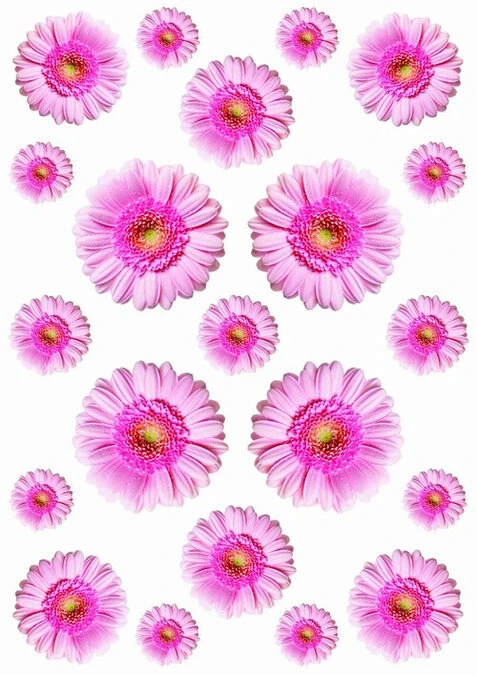 Het stickervel is zo groot als een a4 formaat. De afmetingen van de bloemen zijn verschillend (zie afbeelding).