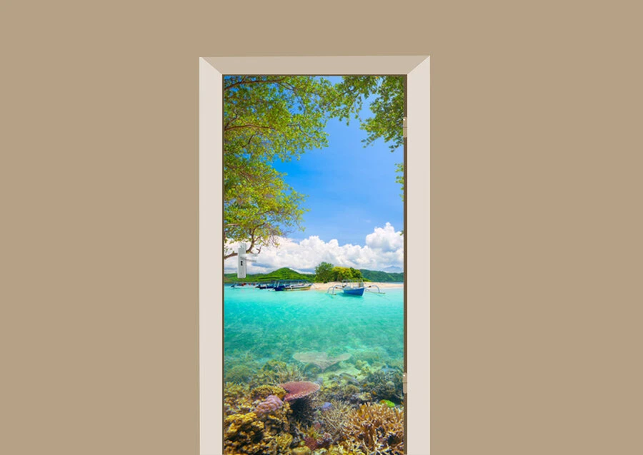 4. Trek nu voorzichtig de rest van het schutvel van de deursticker af en veeg de sticker glad over de deur.
