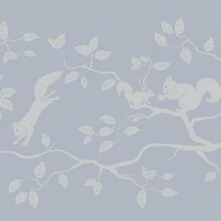 Statisch raamfolie met eekhoorntjes op takken. Het statische glasfolie hecht niet door middel van een plaklaag maar hecht door middel van statische electriciteit. De breedte is 45cm, de lengte snijden wij per staffel van 50cm voor je op maat.