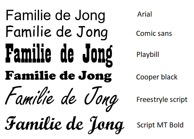 Lettertype: kies het gewenste lettertype (voorbeeld in 3e afbeelding)